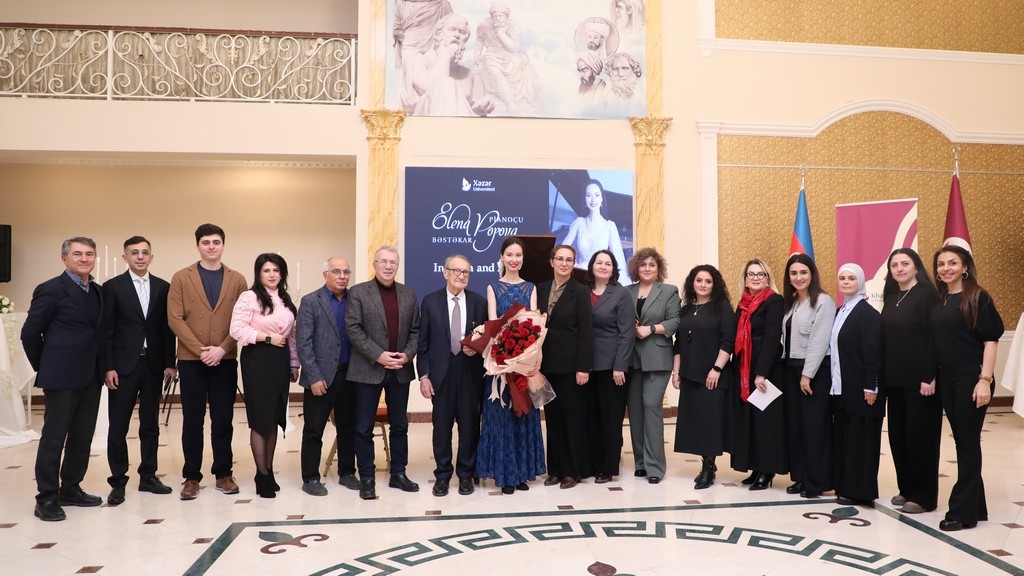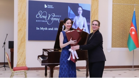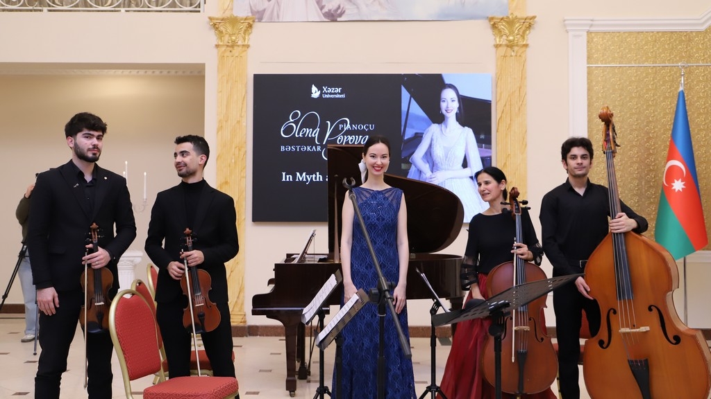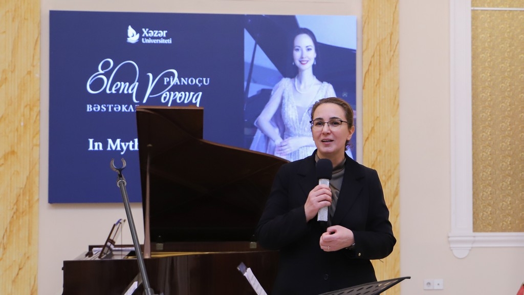 At the concert, Yelena Popova performed both as a composer and as a pianist. The concert was accompanied by the Khazar University Chamber Orchestra (artistic director: Head of the Music and Arts Department, Honored Teacher, and pianist Zulfiyya Sadiqova).
