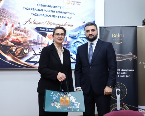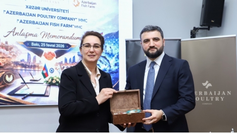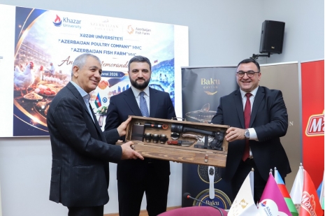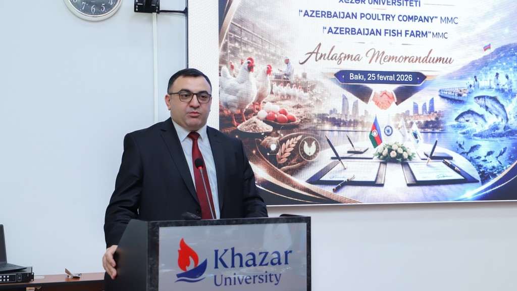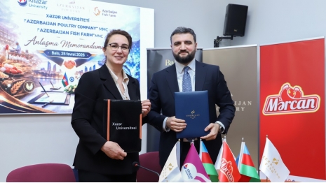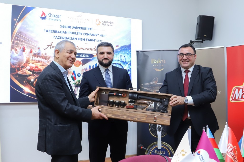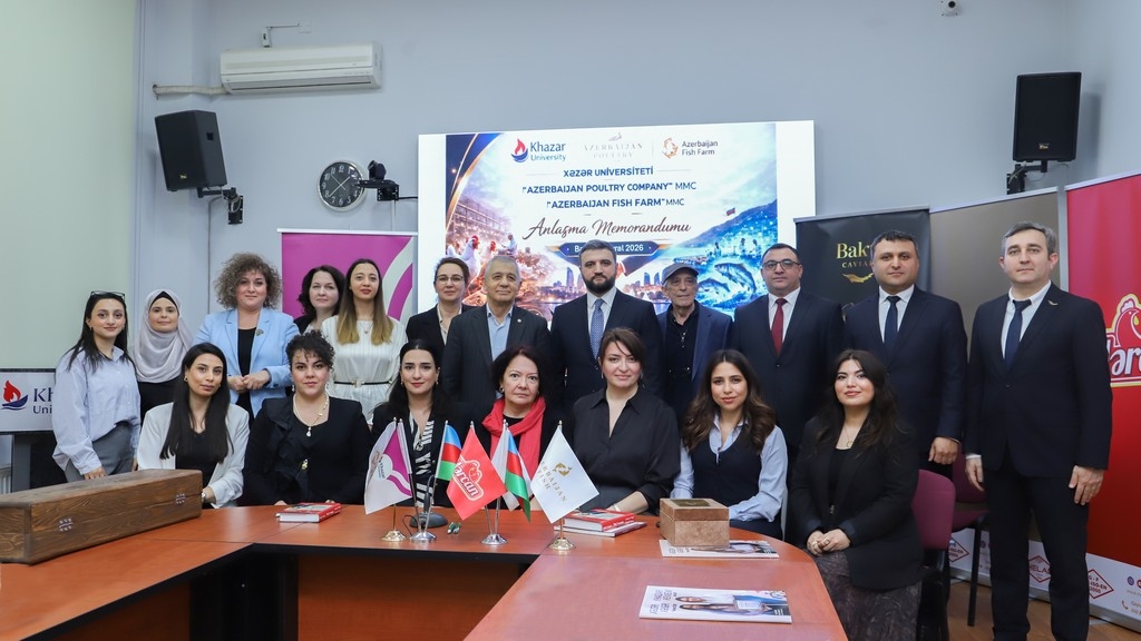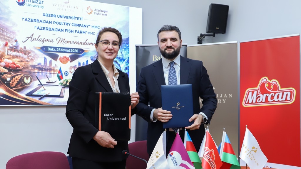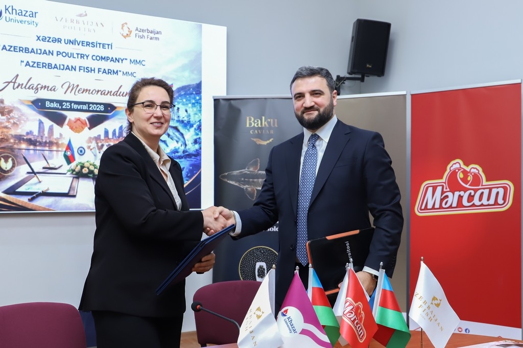 A Memorandum of Understanding on education-industry cooperation was signed on February 25, 2026, at Khazar University between the university and Azerbaijan Poultry Company and Azerbaijan Fish Farm. The document aims to strengthen the integration of higher education with the real production environment, accelerate the development of applied science, and ensure the training of highly qualified personnel.