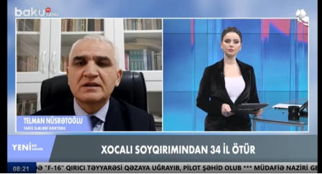 During the interview, Assoc. Prof. Telman Nusratoglu stated that the Khojaly tragedy was a grave crime committed not only against the Azerbaijani people but against humanity as a whole. He emphasized that the assessment of the events within the framework of international law and the investigation of the facts on the basis of archival documents and witness testimonies are of particular importance.