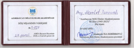 On February 28, 2026, at Khazar University, President of the Azerbaijan National Academy of Sciences, Acad. Isa Habibbeyli, presented the badge “80th Anniversary of the Azerbaijan National Academy of Sciences (1945–2025)” to the founder of the university and Chair of the Board of Directors and Trustees, Prof. Acad. Hamlet Isakhanli. H. Isakhanli expressed his gratitude for the award.