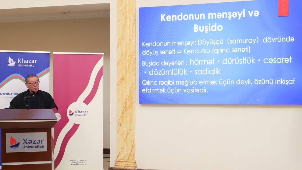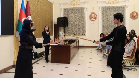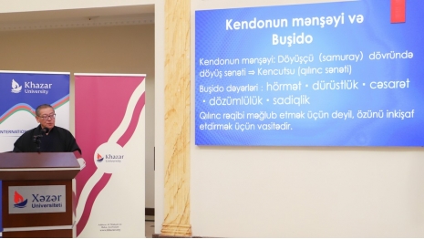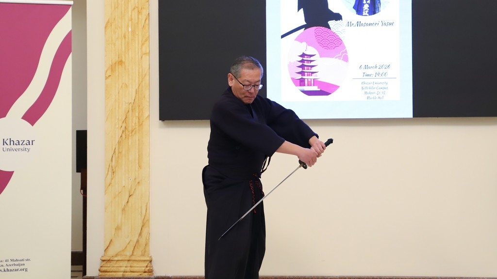 On March 6, 2026, a seminar-format event dedicated to the sport of kendo was held in the Marble Hall of Khazar University, organized by the Embassy of Japan in Azerbaijan. The event was attended by kendo specialist Masanori Yasue and students of Khazar University.