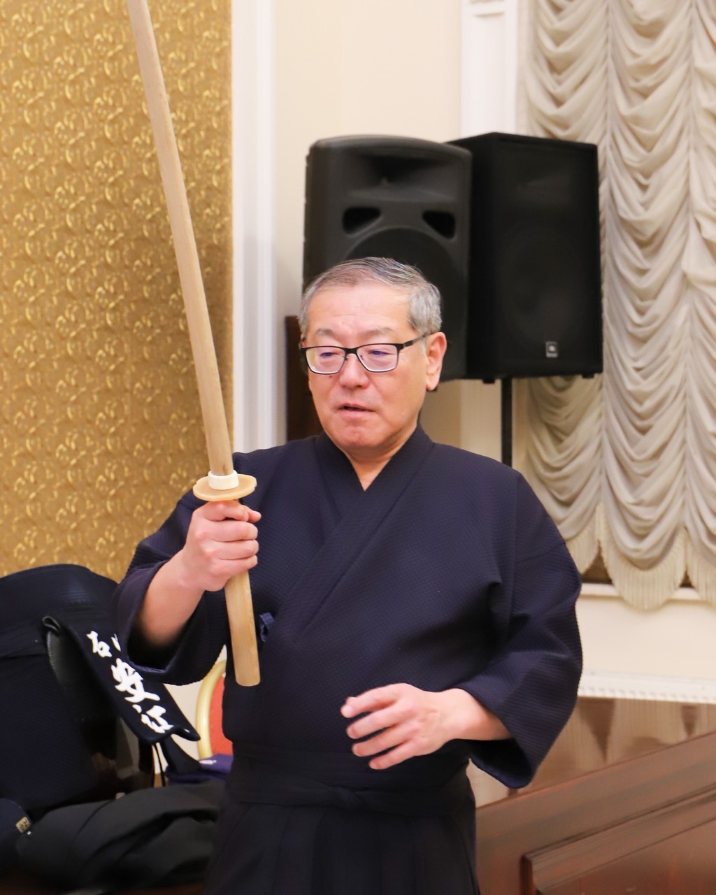 The seminar opened with Masanori Yasue's welcome address and opening remarks. During his speech, he provided detailed information about kendo — one of Japan's traditional martial arts — covering the history, philosophy, and core principles of the sport.
