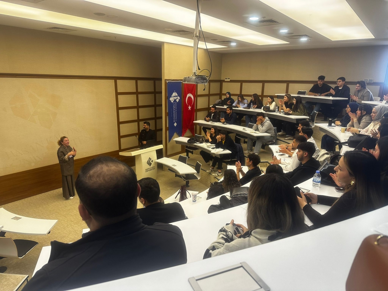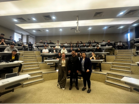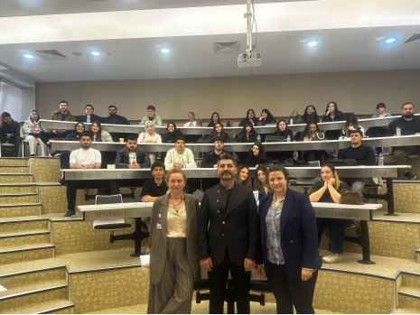 Ulvi Babasoy, Assoc. Prof. at the Department of Languages and Literatures of Khazar University, visited Hasan Kalyoncu University in Türkiye from April 6 to 10, 2026, within the framework of the Erasmus programme. He delivered lectures to students of the Faculty of Architecture and Fine Arts at Hasan Kalyoncu University on topics including "Multidisciplinary Approaches in Literature and Architecture," "The Poetics and Psychology of Space," "Narrative Architecture and Semiotic Methods," "Phenomenological Approaches in Literature and Architecture," "Ekphrasis and Visual Translation," "Architectural Elements in Azerbaijani Literature," "Architectural Elements in Turkish and Western Literature," and others. The lectures were attended by Prof. Gülname Özdemir, Dean of the Faculty of Architecture and Fine Arts at Hasan Kalyoncu University, Dr. Meltem Ararat, Head of the Department of Architecture, as well as other faculty members and students. As a result, the aesthetic and poetic tendencies of architecture and literature as two distinct disciplines were discussed. Dean of the Faculty of Architecture and Fine Arts Prof. Gülname Özdemir stated that the lectures would have a positive impact on students' creative thinking and intellectual development. Ulvi Babasoy answered questions from both students and faculty members.