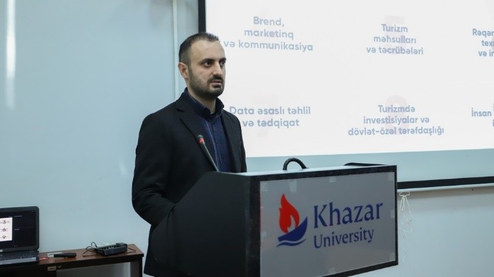The training featured three main presentations. Polad Orujov, lecturer at the Department of Economics and Management, spoke on climate change and tourism policies, examining the effects of climate change on the tourism sector in different countries and discussing the main priorities of Azerbaijan’s tourism development strategy in the context of environmental sustainability.
